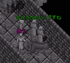 前の私だったらすぐ死んでいたけど、今日は違う!!ポイズンフィールドとファイヤーフィールドを駆使して、まわりも回復させて。でも、回復させようにもみんながどこにいるのか見えなくて魔法が届かなかったりもした。5匹くらい倒して、お金やアイテムを回収。結構お金もってるなあ。 ところが画面がフリーズして止まってしまったのです。こんなときに!!狙われてないから生きて戻れたけど、戻る間にピエールがやっぱりパソコンがフリーズして何も出来ずに死んでしまったあ。はやく生き返さなくちゃと思っても蘇生させる暇がないくらいモンスターもいたりして、あ、tomoさんも回復させなくちゃなどと思ってたら今度は強制終了・・・。こりゃだめかもとか思ってまた焦って戻ったらヒットポイントが半分以下。2回も連続で落ちたからか動きががくがくして調子悪いけど気にしないことにして、モンスターに攻撃されてるので、急いで自分を回復しtomoさんを見たらすでに死んでた。そしたら、また強制終了。3度目の落ち。この間5分もたってないよ・・・。しくしく。