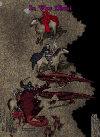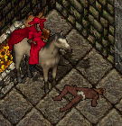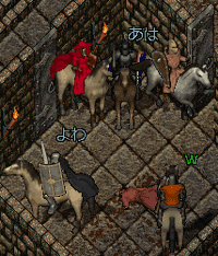 今回は余裕で戦えたかな?ただ、モンスター湧きすぎてキリがないから、適当に通りぬけないと行けなくなる。とにかく半端じゃないのでもくもくと戦闘。私はもくもくと回復。ワニやへびから皮も取れるしお裁縫しながら一石二鳥。 途中にヘルハウンド(通称ゲロ犬というらしい)やヘルキャットとか沢山沢山。オークも沢山。このワニ、へび、イフリート(上の画像)の場所を抜けるととにかくこまかいのが多い。 そして、地下に降りる階段を発見し、細かい雑魚を倒しながら進むと洞窟の中の建物を発見。やっとついたよぉぉ。 まずは、次来る時はすぐこの建物に来れるように、ルーンに、魔法でこの場所をマークする。これで、もうあの雑魚たちを相手にしなくてもここに来れる! 青サンダル欲しい欲しい。ドキドキ。赤いローブの赤メイジがちらほら。このローブの色も染め粉では出せないけど、他のダンジョンにも赤メイジはよくいるのだ。そんなに強くもないし。濃い色はきれいだから、それもGETだわよ。