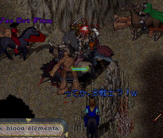 なんかラグが凄くて、死んじゃったほりさんを生き返したピエールがラグでさらに包帯巻けなくて、連打してたらしく、クリックしちゃってレスキルしてたぁぁ(笑 お金も9等分しても沢山になったよ!すごーい!お宝マップも出たしラグはきつかったけどとってもおもしろかったぁ! ★★★ さてさて、深夜の課外活動。 レタスとようようで、OL狩りしようということで、デスパイズに行ったのだけど、まだ時間がはやかったので、ちょっと混んでる様子。OLポイント見てまわったけどどこも多いので、ブリの沼で皮狩りでもしようかぁということに。しかししかし、ちょっとデスパイズのタイタン&サイクロプスポイント空いてるかな??と思ってちょっとのぞきたくなっちゃったの。扇動あればメイジ二人でもなんとかなるさ!って思って・・・。 OLポイントからタイタンポイントまで、トロルうじゃうじゃのところも扇動でらくちん通過。レタスにすごいすごいって言われて、調子にのったようようは、調子にのりすぎたのです・・・。 タイタンポイントは他の冒険者さんがいて4匹くらいを扇動してGetしている様子。はなれたところで、タイタンが1匹わいて、わぁい、と思ったのだけど、扇動先がいなくて、わたわたしてるうちにターゲットされて、ようよう死んじゃいました(>_<レタスはBS出したりしたけど、速攻消されちゃったし、私は残りHPが一桁になったときにインビジたすきを装備しようとしたんだけど、ドジな事にエプロンをつけていたので重なって装備できなかったのでした(><最近死んでなかったから、にぶったぁぁ。たすきもったまま死んだので、死体の上にはたすきがおちてました。レタスも死んじゃったぁぁ。 だめもとで、ピエールを召還だぁ、と思ってヘルプコールしたら、助けに来てくれるとのこと!!あー安心。と思っていたら、アシッドエレメンタルポイントの方から女性の冒険者さんがレタスと私を生き返してくださいました。ううう、ありがたや・・・。しかもようようの秘薬袋タイタンがもってたんだけど、倒して、取り戻してくれたんです・・・。もう帰るところだったみたいなのに、ほんとにありがたかったです。あうう幸せじゃ。 到着ピエールやることなくなっちゃって、ごめんにゃのう。せっかくだから狩りしていこうよ♪とお誘いして3人でタイタン、さいくろ狩りをして帰ったのでした。戦士たのもしや…