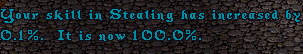 とうとう盗みあげをしていた、こっぺりあが盗みGMになりました♪ほんとはもう一日かかるかと思っていたのに今日一日で98,6からGMまで行きました。道具やさんの箱漁りしたいだけなんだけど、成功率違うかなあ??