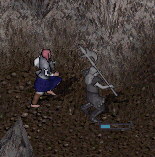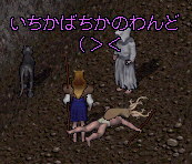 そういえばともさんはアーチャーのゴルゴで参加だけど、一番つらそうだねえ?というわけで、これは置いていきましょう(笑 さてさてharryさんと戦闘になったよっ。harryさんは魔法をうって来て、はやばや死にそうに。しかもね、逃げても私の足遅くてすぐおいつかれてしまうの。あと一発魔法あたったらしぬうってときに、殴っていたワンドがmagicものだったので、それをwクリック、ターゲットはりさんにしたら、なんとファイヤーボールじゃありませんか。連発でファイヤーボールをぶおーぶおーっとうちまくり、勝てました(><