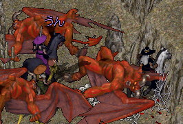 夜は、しおんちゃん、さこんさん、yohyohの3人でWindに行きました。デーモン狩り。yohyohでおでかけひさしぶりだよぉ。Windは魔法スキルが70以上ないと入れないので、おーがでは無理なのです・・・。