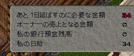 したらば、お店に来てくださったお客様が青インゴットを探してるというので、近くのインゴット売ってるお店につれていったのですがなかったので、ガーゴイルピッケルあるし堀にいくべということになり、お客様とさこんさん、ほりさん、私で掘りにいってきました♪こんな突発的なお出かけもおもしろいですね!お客さんびっくりしちゃったかしら?みんなで楽しめてよかったです。青インゴットも50個あればという事だったのだけど、79個できました。お客さんもよろこんでもらえたようでよかったよかったぁ。 ******** ベンダー自殺寸前めにゅぅ。あぶないあぶない。 ![]() 今って売上から給料ってひかれてるのかしら?? |