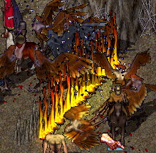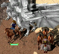 二人で楽勝楽勝ってしてたんだけど、なんか、よその冒険者さんたちいなくなって、ハーピー沸きまくり、石ハーピーに目つけられまくり、しかもゲイザーまで出てきて、回復が間に合わなくて収集つかなくなっちゃったよっっ。逃げれば逃げるほどたげされまくりの大名行列ーー。こんなときは、ぶちねこの必殺!!究極召還をつかう時が!!