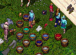 そうそうともさん、私とおなじだけUOやってるのに、染めタブの明度の水色ボタン動かせる事今日知ったとか言うのでびっくり!!ともさんらしいというか天然ボケはいってるわっ。(人のこと言えない)それを聞いて、初心者の人や、服は別にどうでも良いと言っている人に原色カラーが多いわけが少しわかったような・・・。 きれいな色がでても、それは、あのお店に似てるな、とかあるので、そういうのは避けて、なかなか決まらないので、お気に入りショップに次々ゲートを出して、お店ツアーしちゃいました。(大勢でおしかけて、おさわがせしました(><))私の連れて行くお店は、淡い系とか、かわいい系、おちついた系にかたよってしまうけど、こういうのが好きなのってやっぱり女の視点かな?そらのお店はギルドで経営しているお店だから、あまり自分の好みにはしりまくってもなーみんなで作っていかないとなーとかいろいろ考えまするよ。そもそも、自分のなかでもどういうのがいいのかはっきりしないから自信持ってこれにしましょう!と言えないし、考えれば考えるほどわからなくなってしまって。 はむさんがれみちゃんにプレゼントしたお洋服なかなか素敵だったのであの色はどうかな?と持ち出したら最終的にこうなりました!