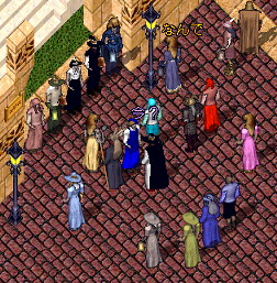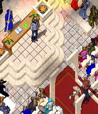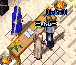 付き添い人ピエールに付き添われ、新婦の登場。ピエールの付き添い人役もこれで2回目!凄く息のあった登場だったよおー。ピエールの服もぶちねこつくっただよ。 れみちゃんのドレス着た所、今日はじめてみました。れみちゃんの赤い髪の毛に一番似合うように。はむさんは青熊らぶなので、はむさんのイメージが変わらないように、でもちょっといつもと違うようーという感じをだすように気をつけたよ。はむさんのズボンはこっそり旧黒メイジ布のLV3です。