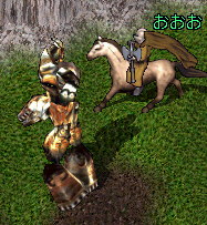 はじめて見るミーア族??なんか青ネームなんだけど、ミホークがマイナスカルマだったので、攻撃されまくりです!ミーアメイジとかかわいげな服きたのがいたり、ミーアを狩りに来てる人たちいたけれど、なにかいいもの落とすのかしらねん?襲われるので倒すのだけどパーティしてるからカルマが大幅にさがりまするな。 それにしてもこの人達のグラフィックがちと怖いよ。TD仕様なのかな?銀河鉄道999にのって別の星に降りたみたいな気分でした。(ふるっ・・・くないよね(−−;?) この後は、じゅか倒しをしました。黄色いひとじゃなぁい。そいえば。なんか日本鎧みたいなの着てる?ロードを倒したり、ひさびさの、赤ローブおじさんのコントローラーを倒したりガーゴイルなんちゃらを倒したり。そしたら、水えれが沸くポイントに来て、水えれをしばしなぐり。