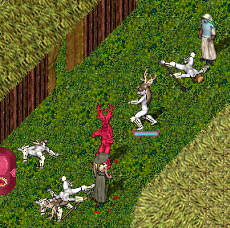 この後ろのほうにもずららーーって。宝捜しみたいにさがさなくちゃいけないのは好評だったみたいー。それにしても1度目かえなかったひとが2度目もがんばってらして、個人的に応援してたのですがやっぱりだめだったのがざんねんーーーっっ!!はらはらしてました。全部で60個まぎれてたようです。 そして11時からはお楽しみオークション!これはすごいですよおお。アガパイト刀・アガパイトダブルアックス・藁・レンジャーアーマーフルセット・デーモンボーンアーマーフルセット&特攻デーモンブロソ・99年バレンタインギフトフルセット・服ブレスDeedすべて1gpからのオークションで、すごくもりあがってたねええ。はーそれにしても今日は夜から11時になっても、ギルメンが一人もQにいなかったので、残念だったぁ。みせたかったよお。