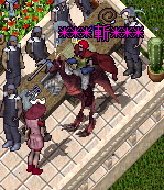 ちょうど撮っていた画像が、おおものを倒したときのキメゼリフだったっ!!ふふふ。真紅のマントにオスタ、そして特殊染めの髪に、すごくカッコイイの。ちょっとおーがあこがれのひとになっちゃうかも・・・。