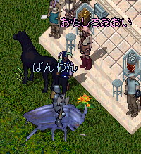 夜ろぐいんしたら、さっそく、さこんさんのってるしっ。おおお。かっこわるい・・・。でもこれ、荷物もてるんだってねええ!しかもみんな集まってきて、女王ありのクエスト??かなんかやっていて、銀行にものが転送できる便利袋みたいなのとか、そんなのはじめてきいたからびっくり!!