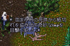 そんでーじつはあとにかいてるので、記憶があいまいなのですがっ。あ、そだそだ、このあとちょと用事ができてしまって一度おちて、また深夜すぎにはいって、さこんさんと、アイスさんと3人でそらの屋上でお話してました。そして、今のEWEのはなしになって、私ねえ、ぜーーんぜん、クエストやってなかったのよっ。おなべもらうのとかっ。そしたら、じゃぁこれからやろうかってさこんさんがいってくれて、3人で魔女のクエストやることになりました。わああああい。 魔女にはなしかけるとおもしろーい。なんか種クエストとかもそうだけど、すごいRPGっぽくなったよねえ弟子をさがしてこいとか言われて、道をうろうろしてたら、死体があらわれてインプが去って行くのとかすごおおおおい!!!