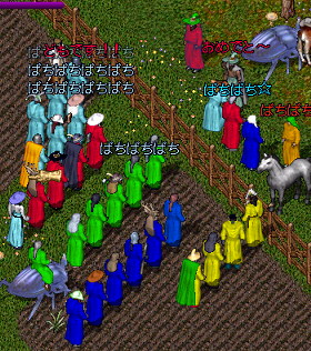 この間、F*Hの雪さんに、雪さんの所属するお店じゃないほうの大型ギルド(かな?)Woeで200枚もの投げ網大会をするので、今度はギルド対抗でルート品にポイントを決めて(地図何点、SOS何点、お金1gpは1点とかそういうかんじで)順位を決めるイベントをするというので、SBCで参加どうですかっとお誘いをもらいました。今回投げ網イベントは3回目になるらしく、雪さんのサイトのイベント日記で、今までのはSS含めてみてたりしたんだけど、とにかくすさまじい!!!ということはわかっていたので、これは絶対たのしい!!とおもってきっとうちのギルドのみんなもイベントとかに飢えてるから喜んで参加してくれるはずーーってかんじで即効OKして、ギルドのみんなにも伝えました。 そしたら行く行く―って楽しみにしてくれて、人数も6人〜10人までということで、人数あつまるか凄く不安だったんだー。うちのギルド人数そこそこおおいし、いつもそれなりに集まってる気がするんだけど、みんな自然にギルドハウスにあつまってきて、人がいないときは全然こないし、みんなマイペース、遅刻魔も・・・ってかんじだったから直前まで、ちゃんと人数あつまるのか不安でした。でも、予定してた人数が7人だったんだけど、そのはなしをしたときにちょうどいなかったあとのふたりもちょうどきてくれて9人での参加となりました! それにしても200枚の網なんてよくあつめたなあああ@@とおもったらF*Hのいわさんが、そらのおみせからも、入手。ぎりぎりまで網あつめてたのかな?! それで、いわさんに、Woeのギルドハウスまでつれていってもらいました。そしたらオールネームで凄い人数!