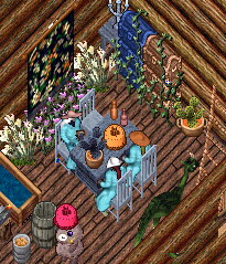 3位は賞金5万gpでした!!!ありがとうございましたあああ♪おわりのあいさつをしているときも、みんなでたのしかったよーって言ったりしたあ。うんほんとにたのしかったぁ。次回はないほど、網をあつめまくりましたとかいってたああ。 そして、解散になって、SBCのみんなは、そらのお店に帰ってきて、屋上にいって、お金をやまわけしました。いやーほんとにたのしかった。みんなも凄い楽しいっていってくれて嬉しい。こういうほかのギルドの人達とチームであそぶのってはじめてだったねえ、やっぱりギルドはいいねえ、深まるねえ、なんてみんなでお話してたの。それに40人以上いたのに、40人ものひとがこうやってゲームの同じ場所でリアルはなれたところから、一緒に遊べるなんてなんかすごくふしぎだなああってしみじみと思ったぁ。 誘ってくれた雪さんはじめWoeのみなさん、GRCの皆さん遊んでくださってありがとうございましたっ!! さてさてそらで解散したあとは、さこんさんがさこん、かのん、しき邸にタペストリーを飾って内装もしたというので見に行きました!!そしたらすごいすてきになってたあああ
