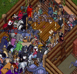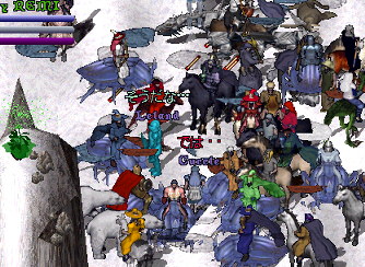 沢山のPC達が見守る中、紫ネームの人たちが会議をしています。途中からなので、よくわからないのだけど、このあとげーとがでて、ぷれいやーや、紫の人たちはいっていきました。ちょと私生産きゃらだったので、やばいかなとおもってどうしようとおもってるあいだに、とりのこされちゃったので、そらにもどってようようにキャラ替えして、さこんさんたちに逆げーとしてもらた。そしたら、そこは、毒薔薇のさいている、北極でした。そんでエレメントが大量出現してたああ!!雪えれ、血えれ、水えれ、毒えれ!!れみちゃんいわく、扇動がきかなかったらしい。みんなでたおしまくりー。けど、おもーーーい。こわあい。私は、ようようじゃなくて、おーがでくればよかったなあなんて思いました。 あらかたたおしたら、また、紫の名前のおふたりがしゃべってて、女の人のほうはダメージをうけながら、毒薔薇に近づいて、いろいろ調査しているようだった。