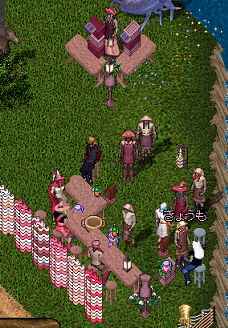 れみちゃんがルーンくばりを手伝いにきてくれました。ぶちねことおそろいの服で、ルーン配りしました。1銀前は結構もらってくれるひといたああ^^ 男性のお客様にはプレゼントもありますっとか言ってくばりました。ルーンもらってくれる男性の人けっこういたねえ♪ それで1時ころまで、配ってたかな?そろそろイベントの方様子見に帰ろうーって帰ってきたらお客さんたっくさんいたああ。みんなぴんくのかっこうして!しかも、右側の海でみんな一列に並んで釣り大会してるし!釣り大会の画像はとりそこねたぁぁ。さこんさんが釣り竿くばってたんだよね?! 先週は私、お茶会スペースであまりお話しなかったんだけど(緊張して(><)今回はちょといろいろな人とお話できて、よかったぁー。 ピンクタブバーのテーブルや設置したものが、少しずつ腐って来た所で、終了になりました。タブとかも消えちゃって!今日が立会いイベント最後の日でよかったっ。 沢山の来てくれたお客様ありがとうございました♪うれしいねえええ。 それとギルドのみんなもきてくれてありがとうー。花火とか沢山打ち上げてくれて、うれしかたよぉぉ。 今回のピンパンイベントは、準備とかみんなで遅くまでやったり、お客さんにも沢山来てもらったりとても楽しかったです!またやりたいねええ^^こういうの。 そして、特設ベンダーでのお菓子販売や、ぴんぱんスタッフ6名の合作お洋服ベンダーは14日までやっているので、こちらはまだまだよろしくね♪ イベントも終わって、そらのお店に帰ったら、みんながまったりしていて、受験生みほーくが復活!!で、久々の再会っ。浦島太郎なミホークにみんなでいろいろ教えてたり。 そうそう!!!それで、ぶちねこはとうとうアカウントが36ヶ月になったのです。わぁーい。でもでもでも、これってキャラごとにずれがあるね(><? ぶちねこは、36ヶ月なのに、そのほかのキャラは35ヶ月なのん・・・。ようようと、おーがに、透明動物乗せたかったから、まだもらってません。ちょっと待てば36になると思うけど・・・。そしたら、さこんさんが透明馬のれーって言ってさこんさんの透明馬貸してくれました!!!わああああい。