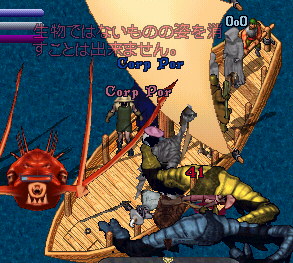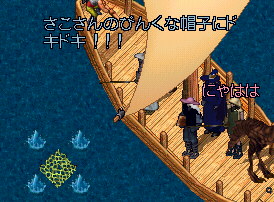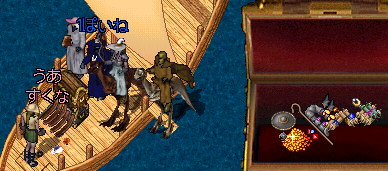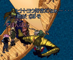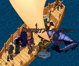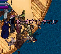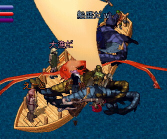 そうそう、そういえば途中で倒した水エレから盾が出て、それを船の上においていたのだけど、誰かもちあげたのかなぁー?海にボトって落ちて!!!船は前進してるからどんどん離れていく盾・・・・不法投棄だー!!!と騒いでおもろかたにゃ。結局そのまま・・・・@@