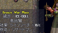 そしたら、しりゅさんが、つくってもらったメイスがリザードマン特攻メイスだったので、しりゅさんが使わないからということで、おーがにくれたのですっ。わぁい嬉しい。皮狩りしまくりっ。