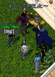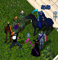 アリスさんにさこんさんがアンブラローブをぷれぜんとしてみんなでネオン武器みせびらかし!!しばらくここがかわったよぉーのUO話をしたりしました。