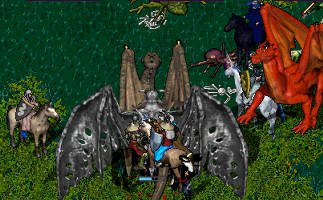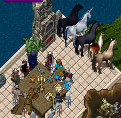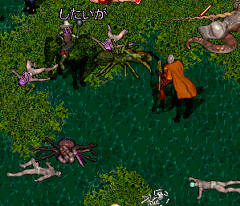 分配の様子♪一列に背をむけたペットたちがかわいい。そしてこの後は、しばらくみんなで、まったりお話たいむ。ほかのオンラインゲームの話になったりしました。みんなけっこうほかにもいろいろやってたみたい?FFとかねえ。出たばかりのは信長のとかっ!私は、過去にはPSOちょっとやってて、今は、ディプスファンタジアちょとやっとります。そしたら、話は、オンラインエロゲー出ないかなとかいうはなしになって、そんなの出たら、さこんさんUOこなくなるよ!という意見で満場一致!!(にゃはは書いちゃった)