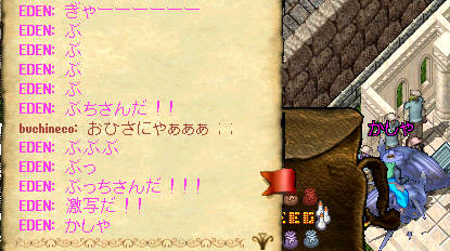↑昨日久しぶりに入って空だる作りをしていたら、シヴァちゃんに激写されました!それくらいお留守に・・・。そんで今日は、久々にそらのみんなに会えたぁぁぁぁ。全然UOってなかったのです;;